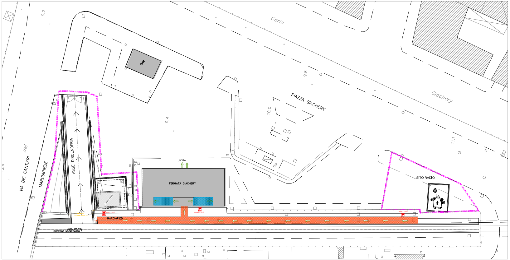 Vengono inseriti elementi quali la discenderia e la stazione radio, come vediamo in planimetria. L’intervento è stato presentato al Comune per la necessaria autorizzazione, in quanto prevede opere non inserite nel progetto originario dell’anello ferroviario e quindi non calate nella programmazione urbanistica della città. In fondo all’articolo, vi proponiamo la planimetria del progetto.