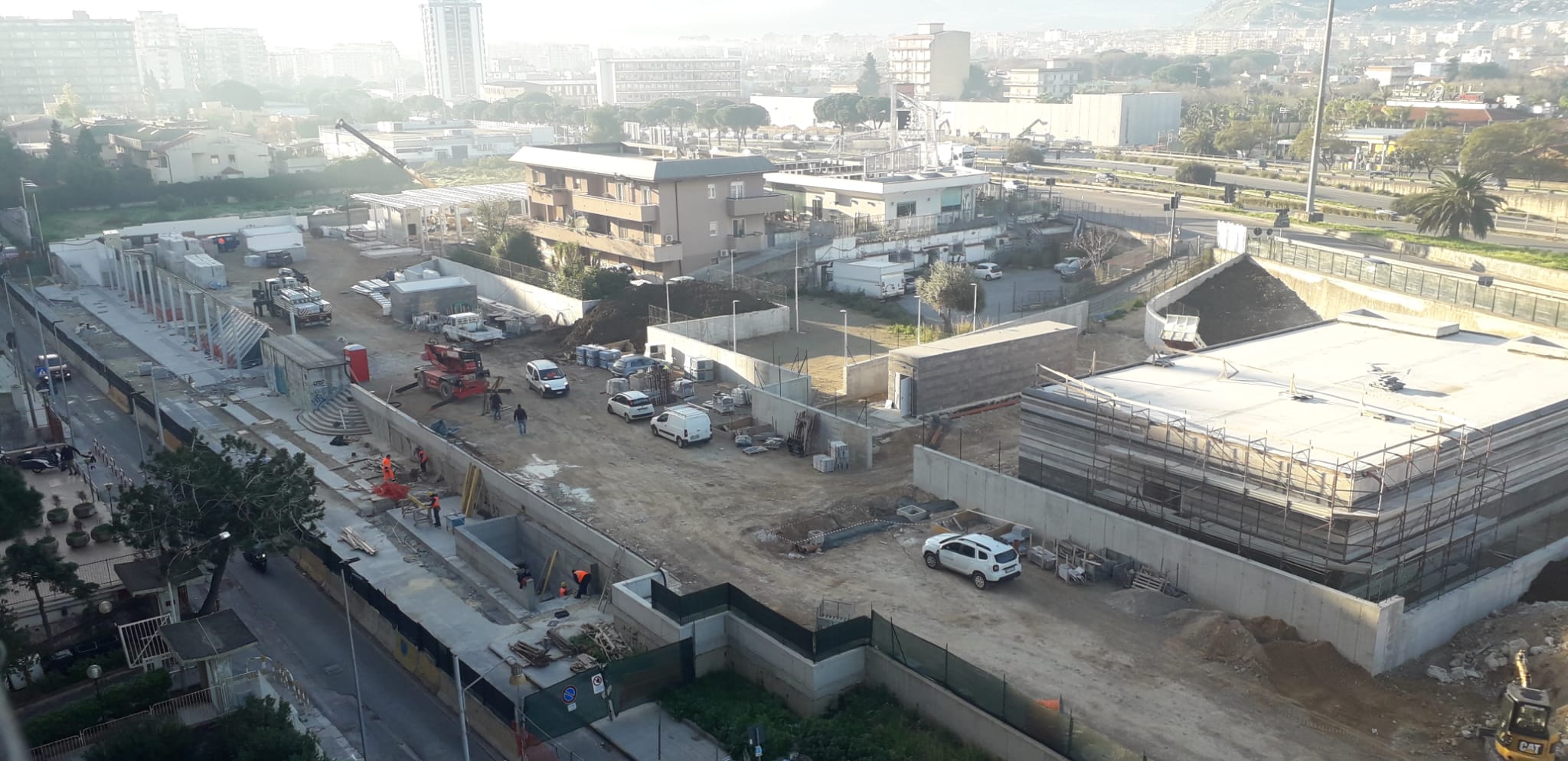 Ancora una volta il nostro follower Emilio, che ringraziamo per la cortese collaborazione, ci delizia con alcune foto panoramiche della futura fermata De Gasperi del Passante ferroviario di Palermo. Ormai si lavora da due anni alla fermata che servirà una zona residenziale molto densamente abitata, vicina allo stadio di calcio Barbera. Per migliorarne l’accessibilità, come ricorderete, “In Progress” ha proposto una soluzione tecnica che consente l’accesso lato monte, già approvata dal Comune e che, ci assicurano, sarà realizzata (QUI un video esplicativo sul nostro canale Youtube “In Progress”).