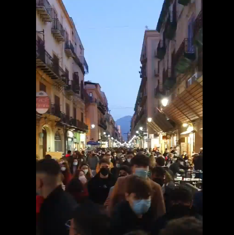 Immagini scioccanti di assembramenti nel centro di Palermo, riprese sabato sera: siamo in via Maqueda, di solito meta di passeggiate serali, ma… Ricordiamoci che siamo in piena emergenza COVID!