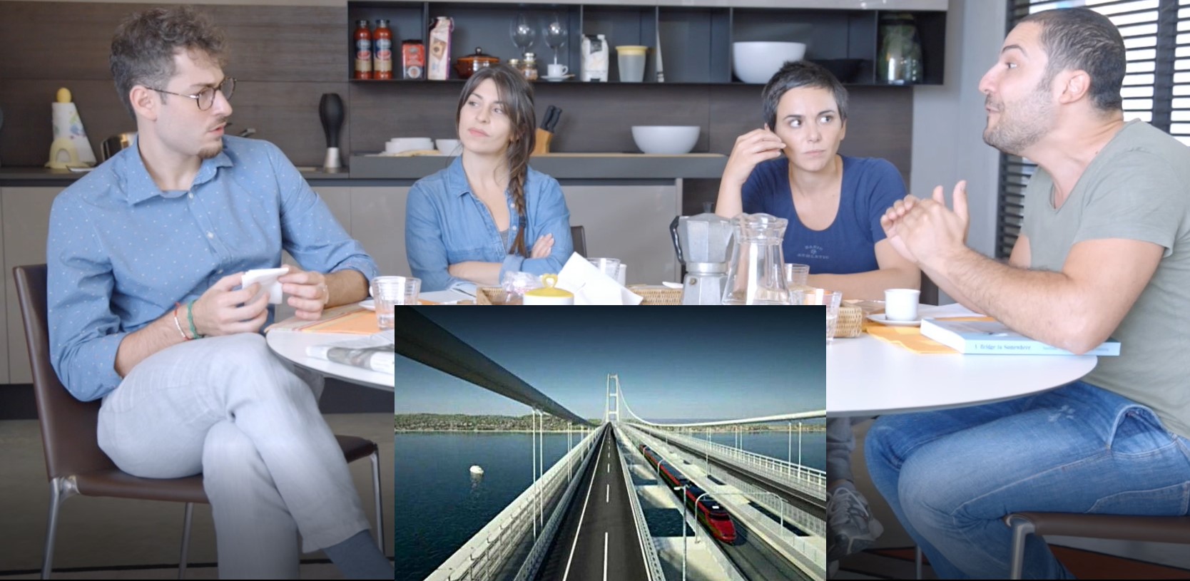 Il filmato è di qualche anno fa, e propone una conversazione fra amici, durante la quale viene fuori l’argomento “Ponte sullo Stretto“. I ragazzi discutono dell’opera e, di fonte alle obiezioni di uno di loro, spiegano perchè la realizzazione dell’opera di attraversamento stabile è un’opportunità che la Sicilia ed il meridione d’Italia non possono perdere.