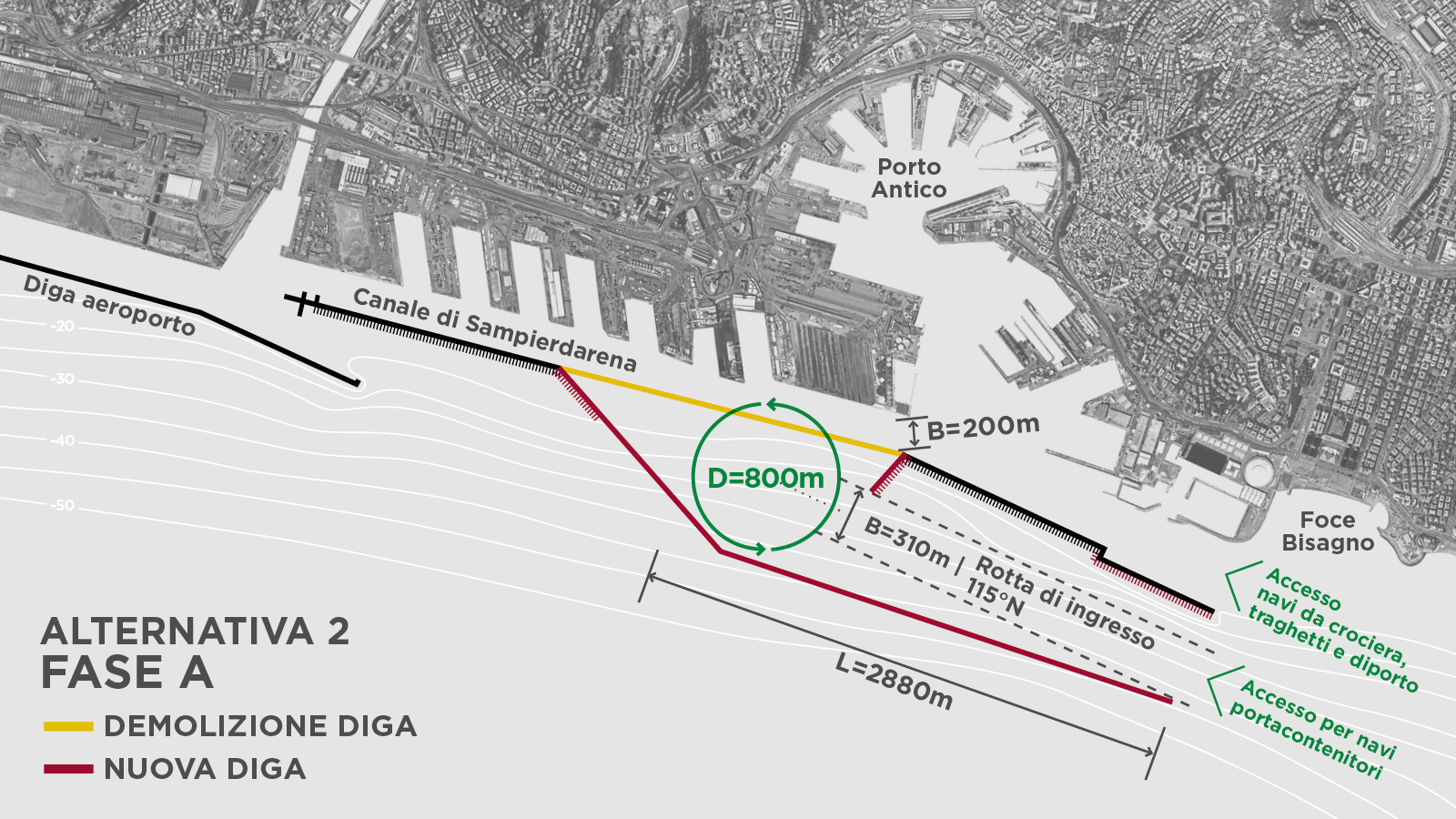 Accenniamo soltanto alle difficoltà geotecniche di un fondale con “strato superficiale di limo argilloso, avente consistenza in pratica nulla e spessori variabili dai 5 ai 25 metri”