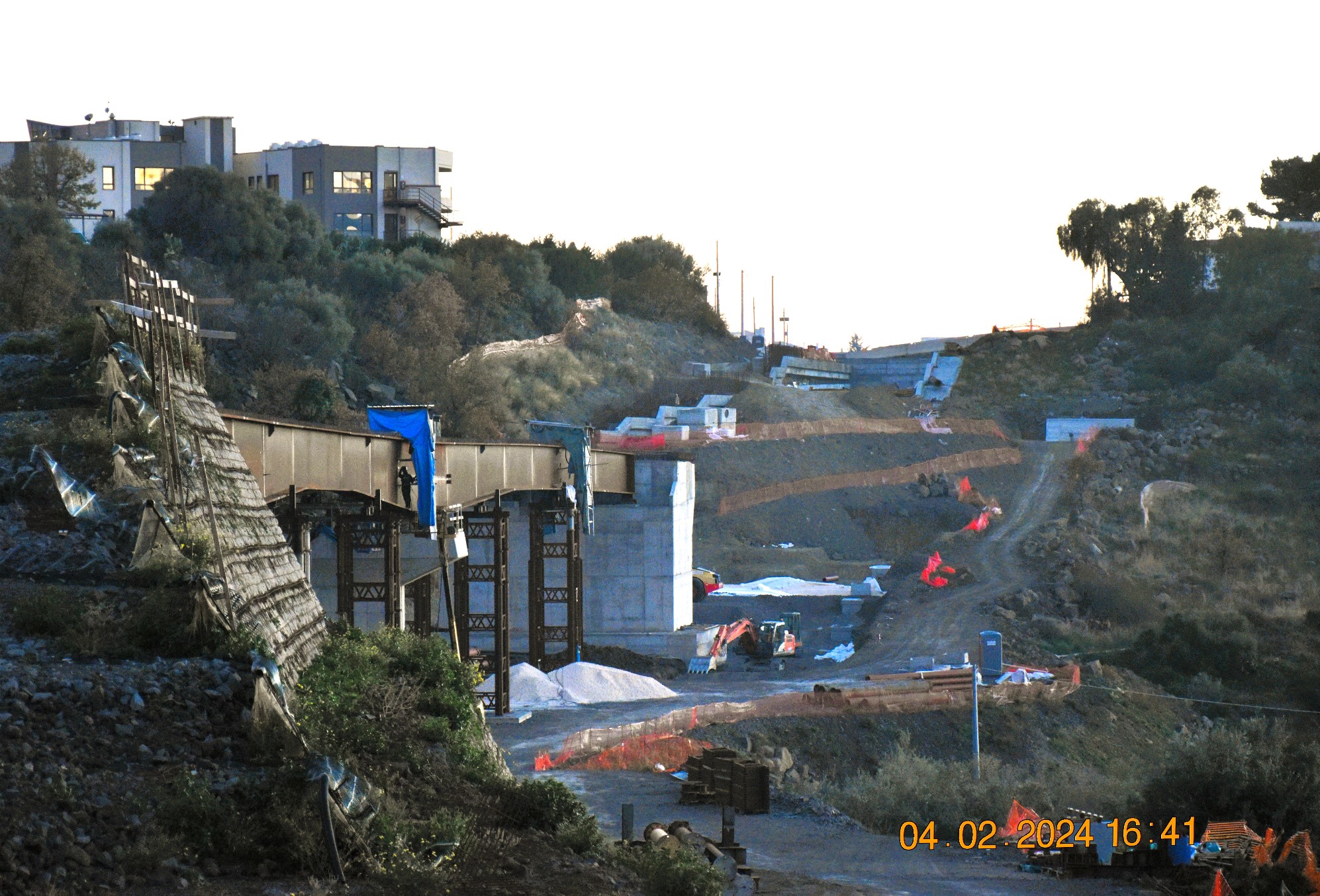 Più avanti, è visibile anche la struttura di imbocco lato nord della galleria artificiale Naviccia che presenta una lunghezza di 42 m, costituita da pali di grande diametro in da 1500 mm., con strutture interne in cemento armato.