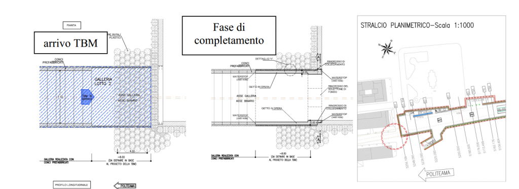 Il tutto per evitare interferenze con la stazione Politeama, che per allora sarà funzionante, ma anche altri stravolgimenti alla piazza soprastante. La TBM, inoltre, arriverà in corrispondenza del muro di contenimento della stazione ubicato al di sotto della confluenza di via Paternostro su piazza Castelnuovo, in posizione quindi diversa rispetto alla ex rampa nella foto di copertina.